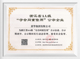浙江省AA级“守合同重信用”公示企业(2022.9.28-2024.9.27)